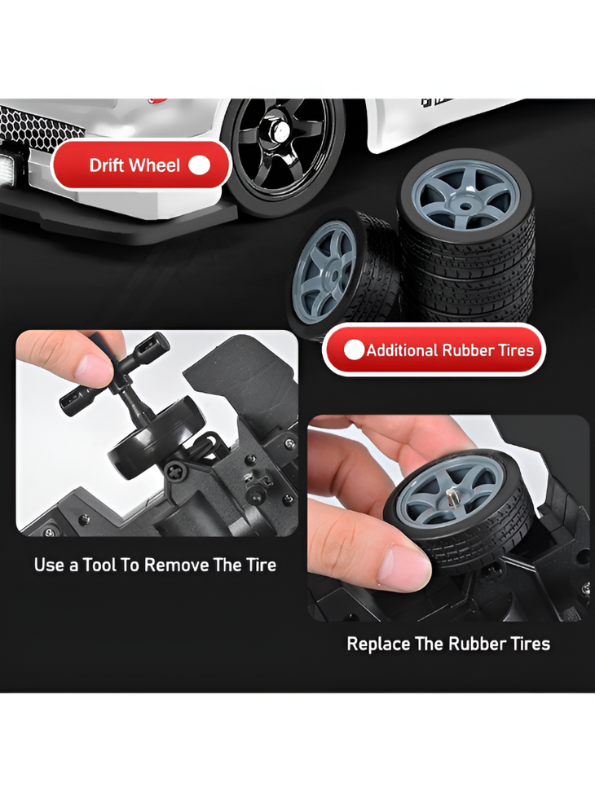 - Drift & Stunt Ready Tires – Designed for controlled slides, spins, and fast maneuvers on smooth indoor and outdoor surfaces.