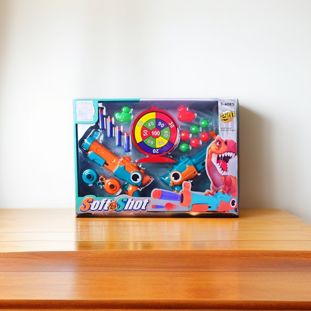 2-in-1 Dinosaur Theme Kids Toy Gun Blaster Set – Foam Dart & Target Ball Shooter with Score Target | Safe & Fun Shooting Game LMI14891.
