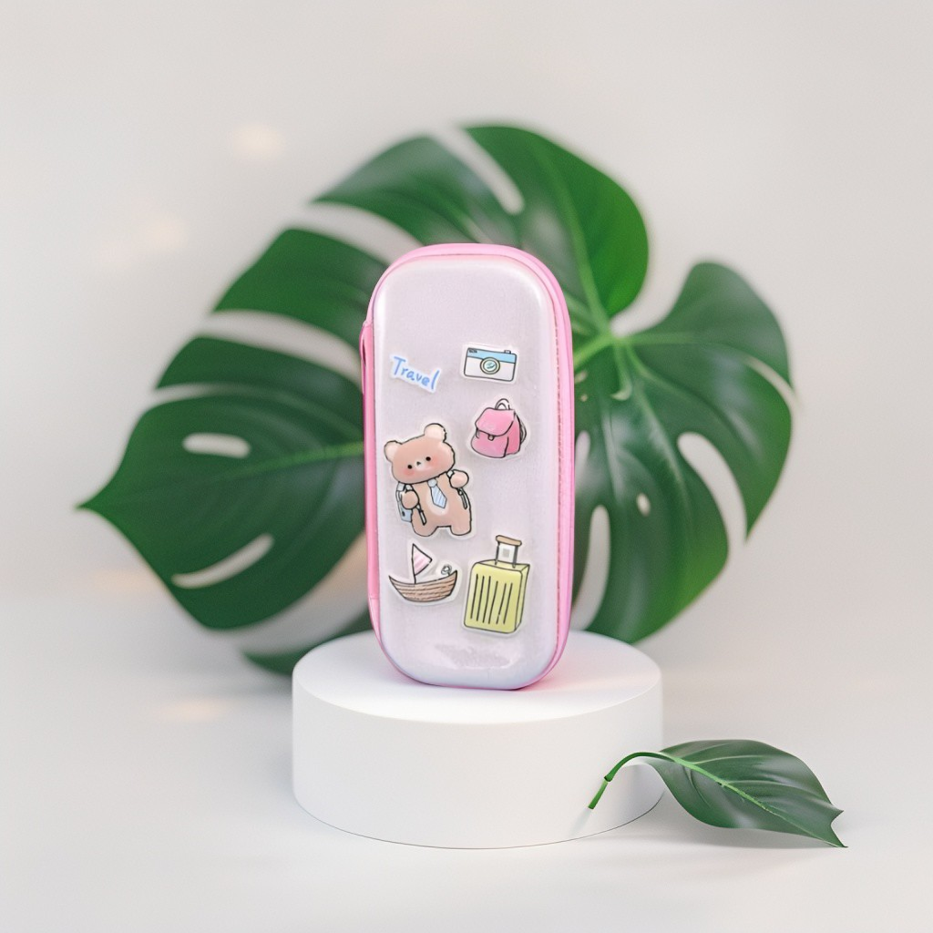 Bearvoy – Bear Travel Theme Pouch for Kids | Single Chain Adventure Pencil Case | Cute & Durable Stationery Bag NOV3759.