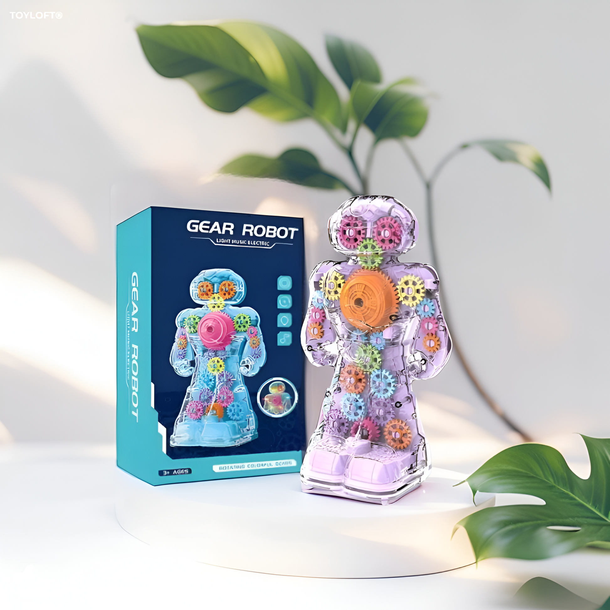 - Electric Transparent Robot Toy – Features a clear design showcasing moving gears inside.