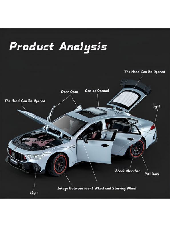 - Opening doors, hood, and trunk for a true-to-life model feel.