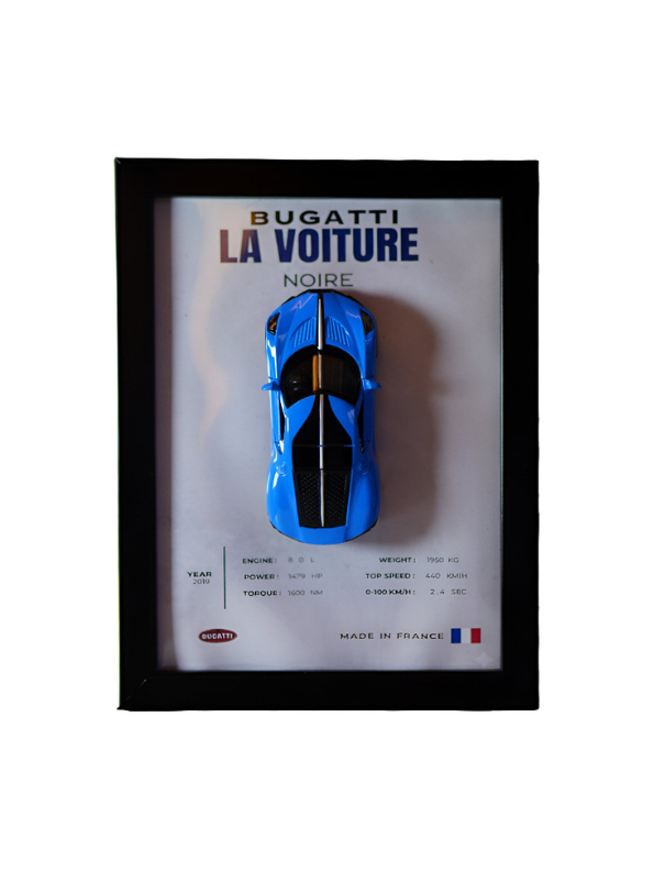 Bugatti La Voiture Noire 3D Frame Diecast Car – Premium Hyper car Collectible Blue.