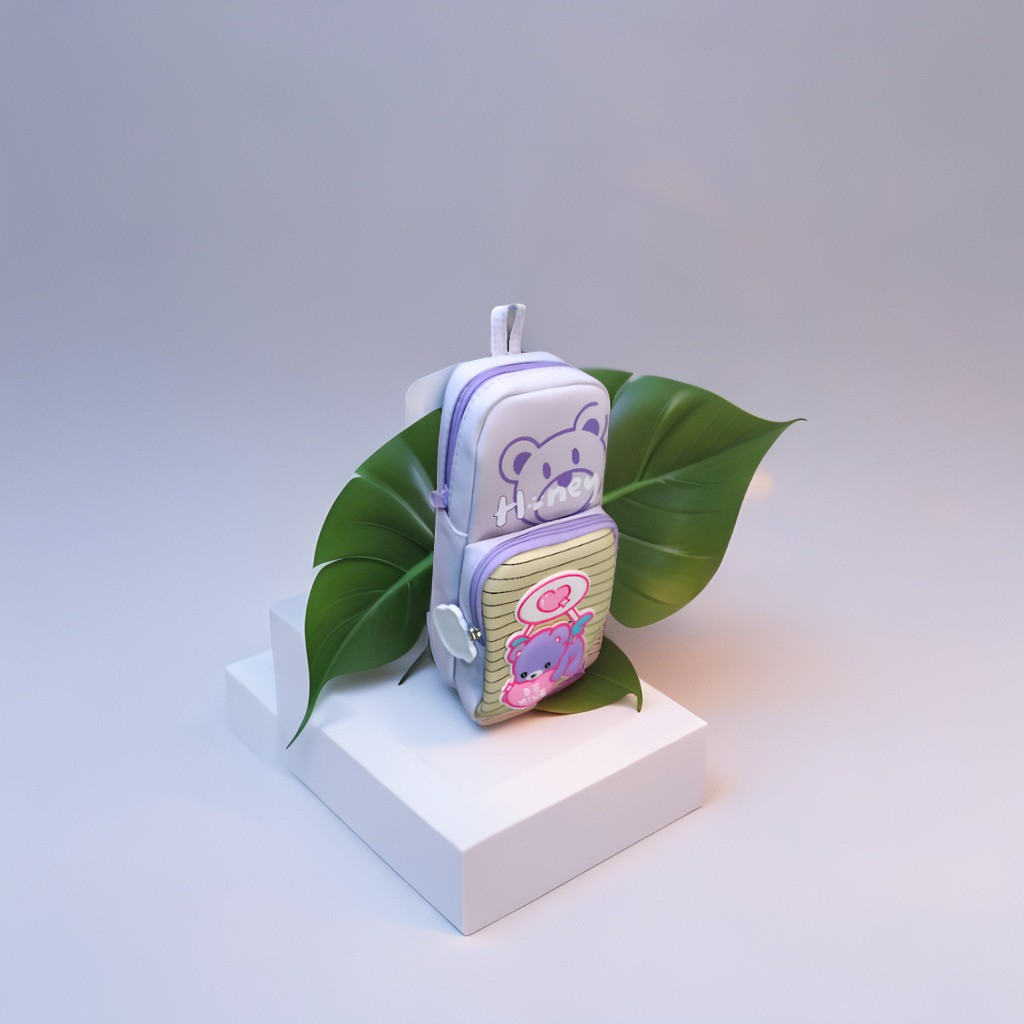 Cute Lavender Bear Pencil Pouch with Zipper | "Be Mine" Cartoon Stationery Case | Kawaii Pen Bag for Girls & Kids NOVGBT-50042.