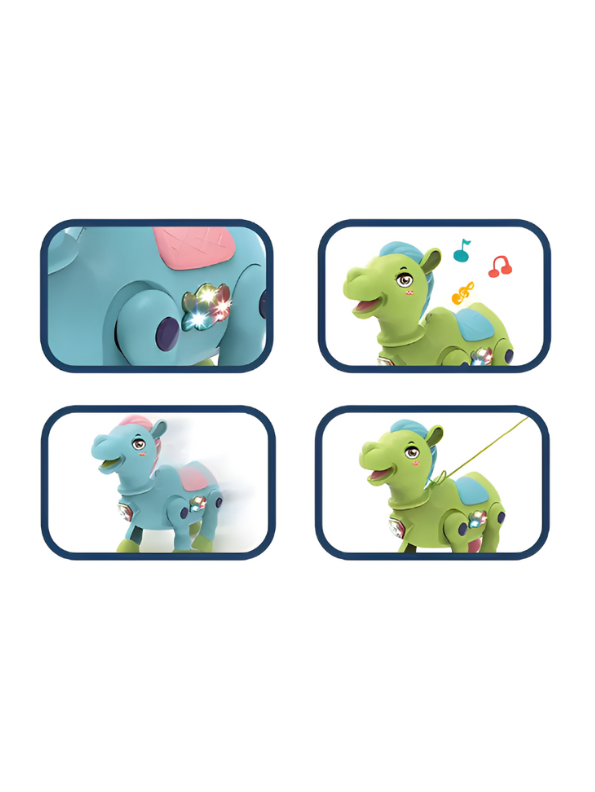 - Built-in musical tunes play while the camel walks, enhancing the fun atmosphere.