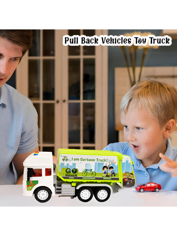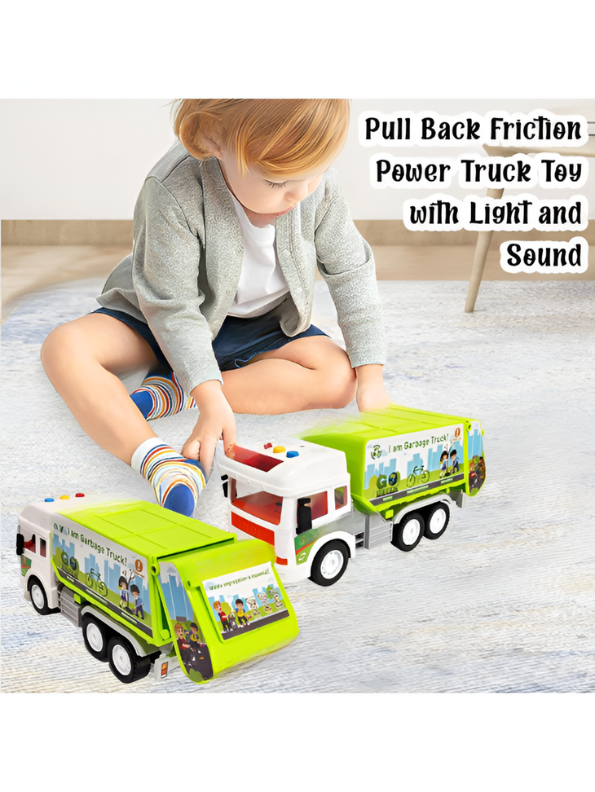 Friction Powered Garbage Truck Toy with Lights & Sounds – Green Eco-Friendly Recycling Truck for Kids LMI11034.
