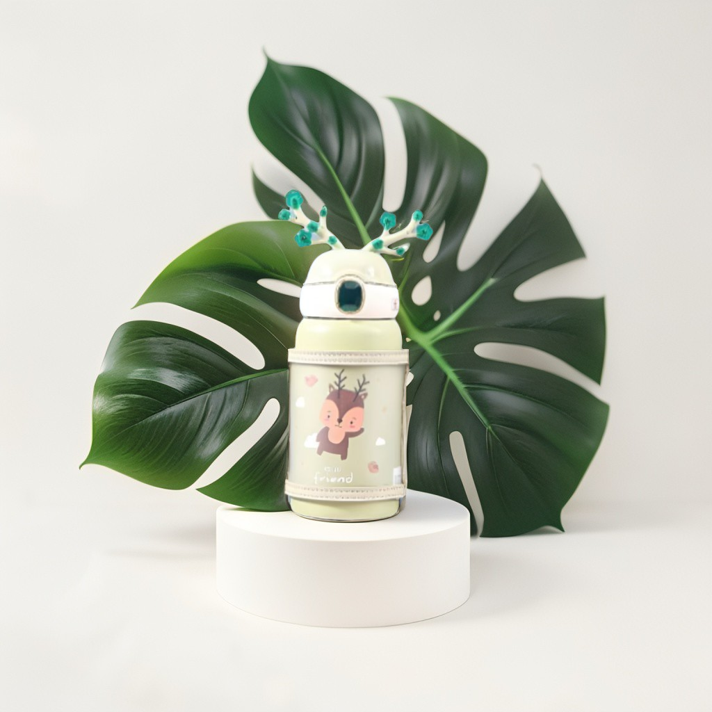 FrostySip Reindeer Horns – 550ml Stainless Steel Sipper Bottle | Cute Leakproof Water Bottle for Kids & Adults NOV5269.