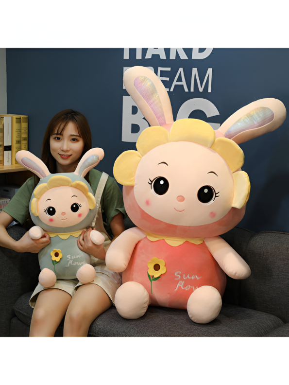 Cuddly Long Ear Bunny Plushie | Soft & Huggable Rabbit Stuffed Animal for Kids | Unique Soft Toy with Sunflower Design LMI7973