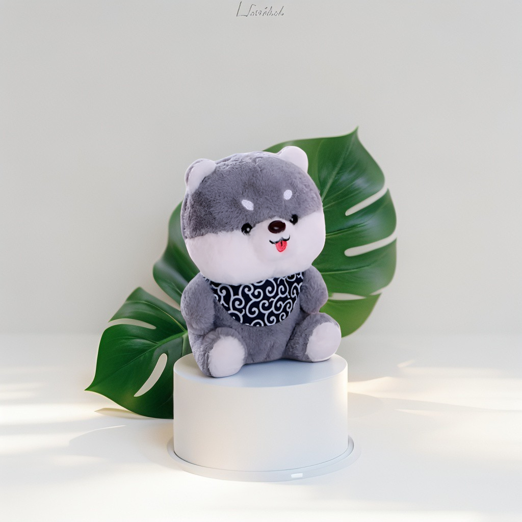 Grey - Shiba Inu 8-Inch Plush Toy with Scarf | Cute Stuffed Soft Toy Animal Dog for Kids & Adults LMI11060.