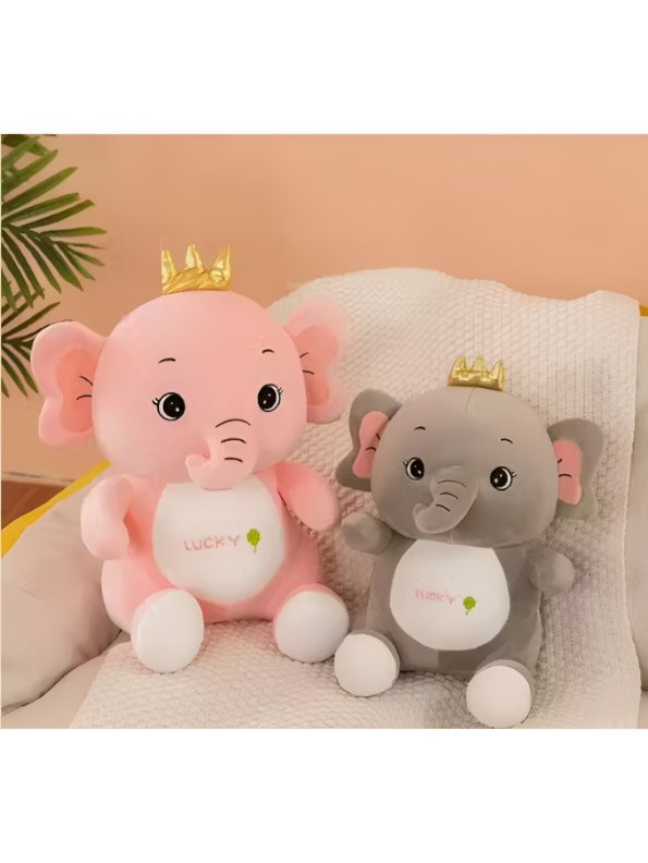 Lucky Grey Elephant Plush Toy for Kids - 10-Inch Cute Stuffed Animal Soft Toy with Golden Crown LMI14141.