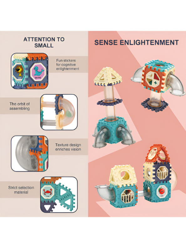 - Marble run building block set with 110 pieces for hands-on STEM learning and fun