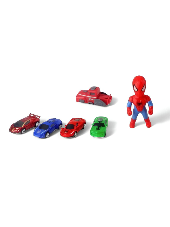- Includes 4 superhero racing cars for action-packed play.
