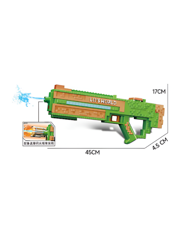 Minecraft-Inspired Electric Water Gun - 47cm Automatic Pixel Water Blaster with RGB Lights, Rechargeable High-Power Squirt Gun for Kids & Adults Green LMI15742.