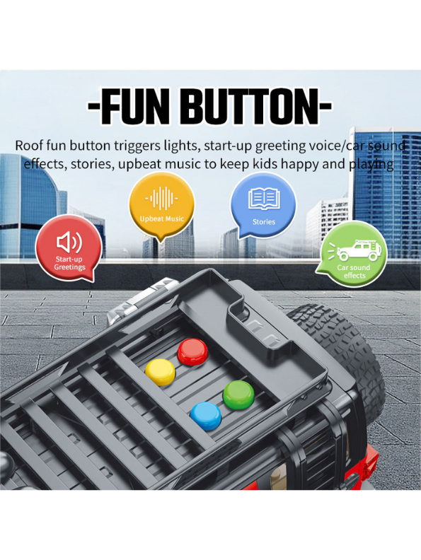 - Durable Roof Rack and Accessories – Built-in roof rack for added play possibilities and rugged off-road styling.