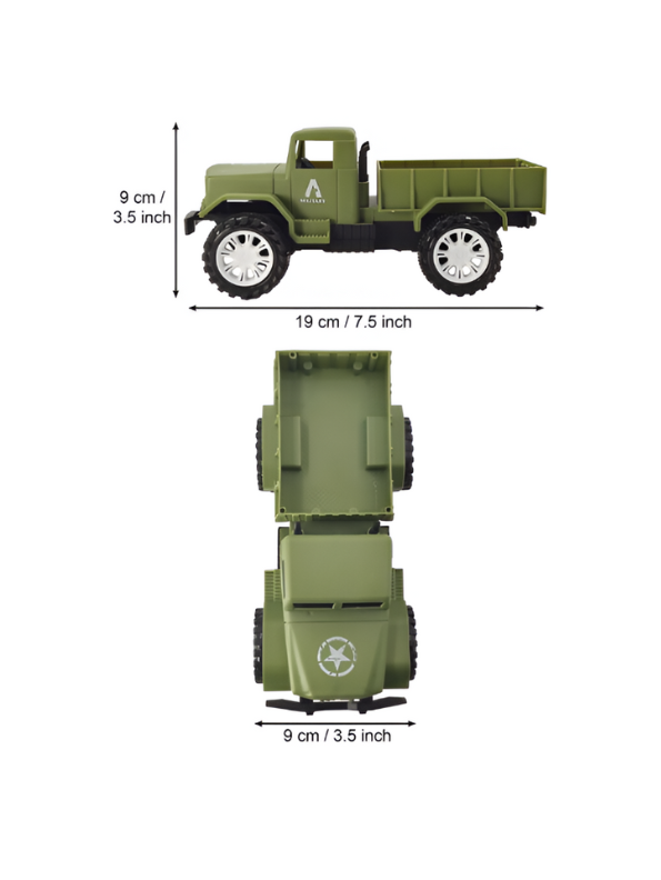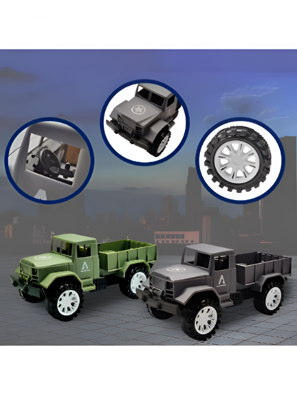 • Pack of 2 military toy trucks designed with realistic army-style details