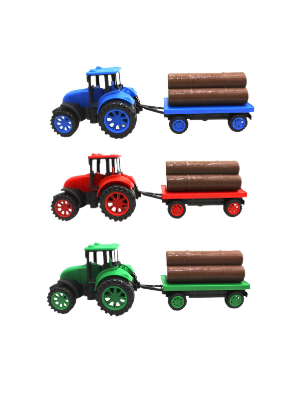 Pack of 3 Toy Tractor and Trailer Set with Log Cargo LMI10993.