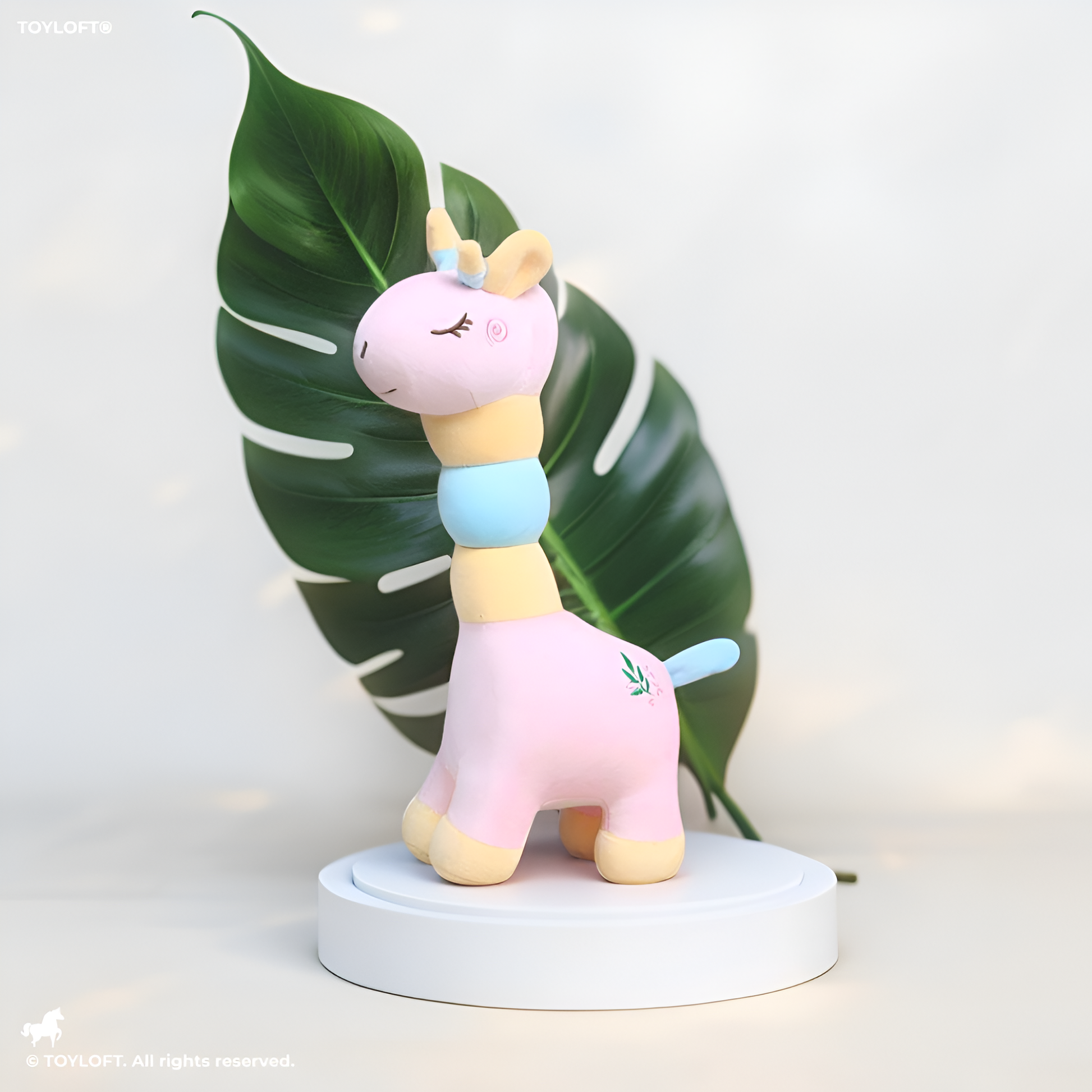 - Adorable rainbow-colored giraffe plush toy with a soft and fluffy texture.