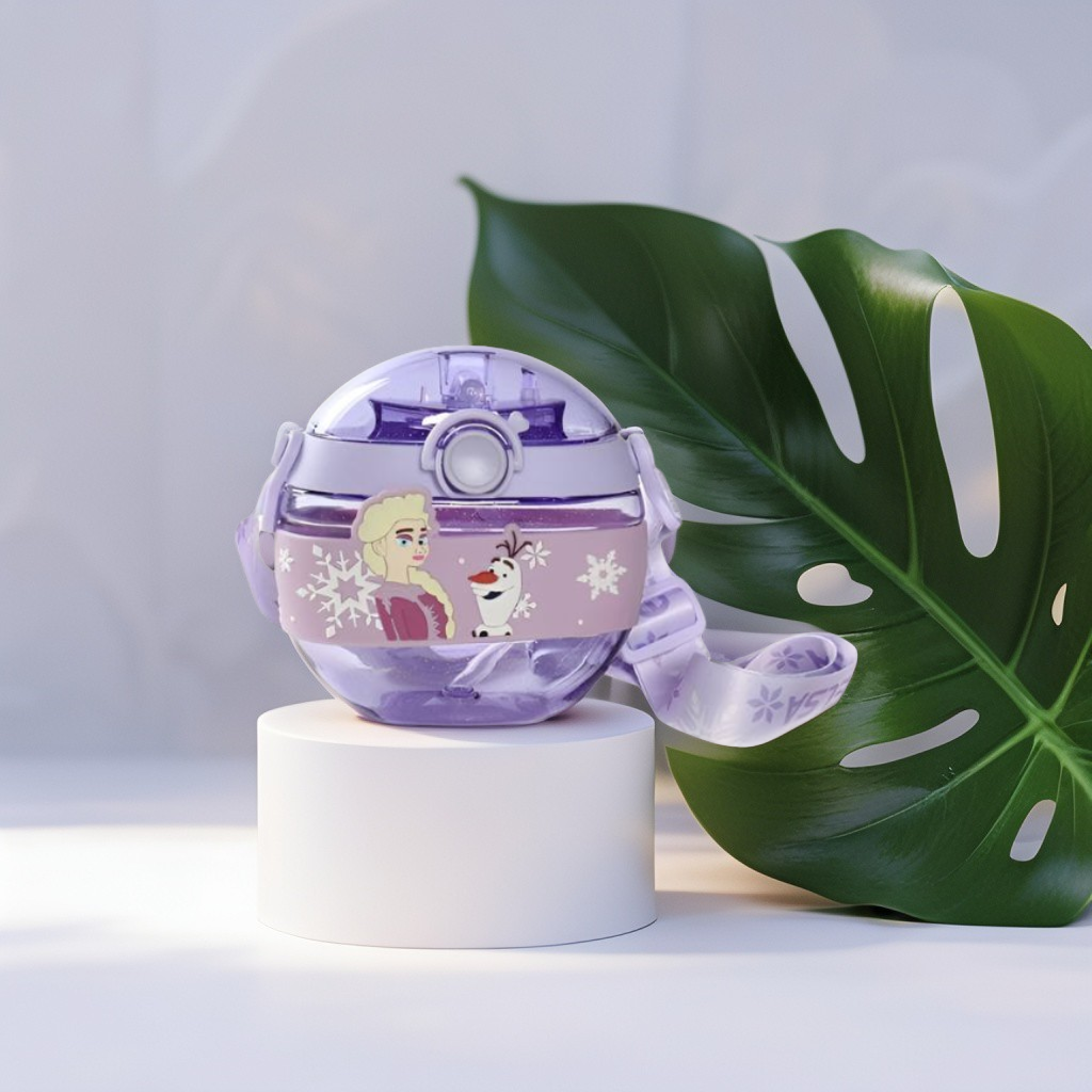 Purple - Disney Cartoon Donut Shape Sipper Water Bottle for Kids – 420ML BPA Free, Leakproof, Lightweight, Push Button, with Strap – Ideal for School Use NOV10477.