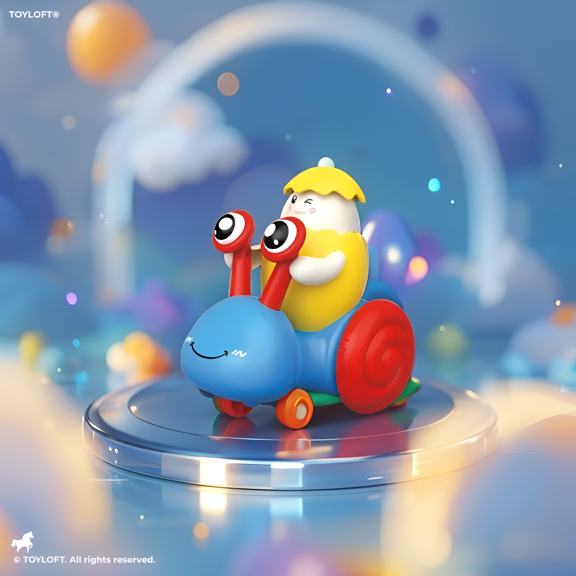- Adorable push-and-go snail toy featuring a cute winking egg rider