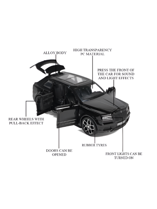 - Luxury SUV collectible replica inspired by the iconic Cullinan design.