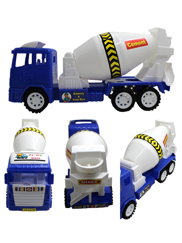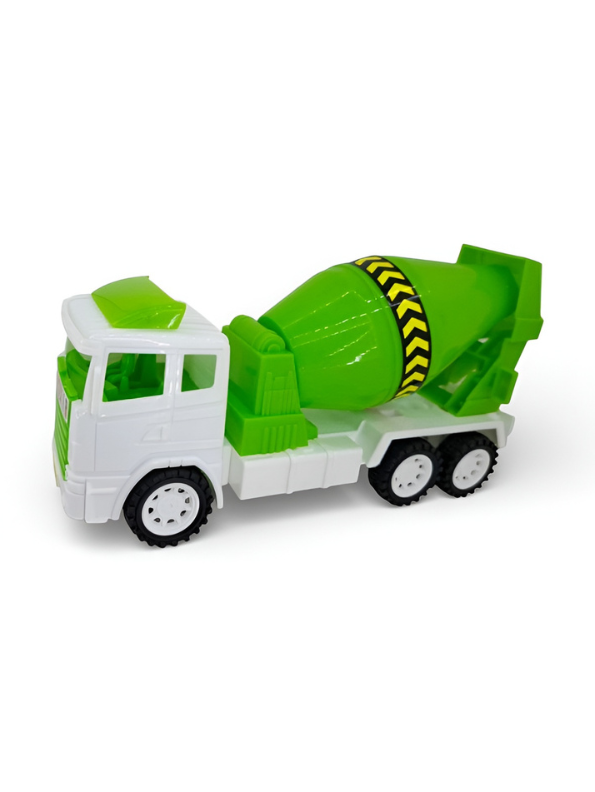 - Includes 3 cement mixer toy trucks in bright blue, green, and red colors.