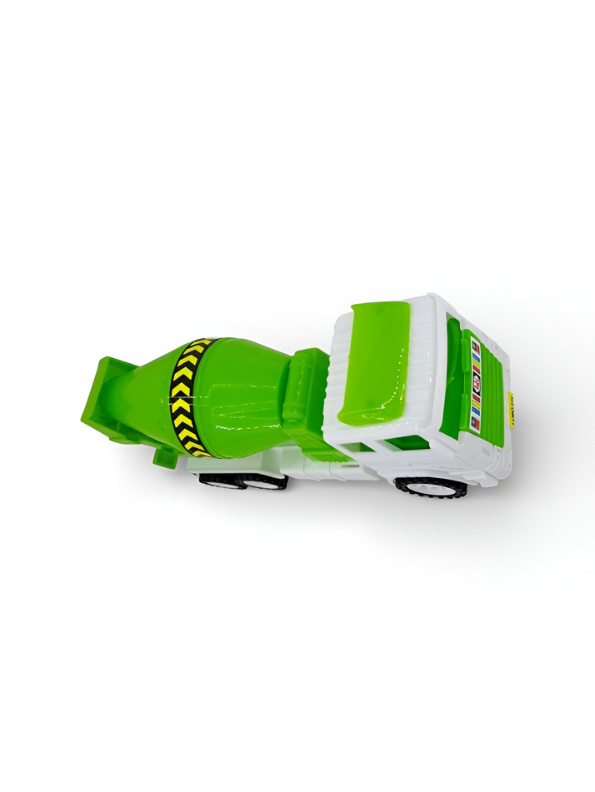 - Realistic rotating mixer drums add authentic construction play action.