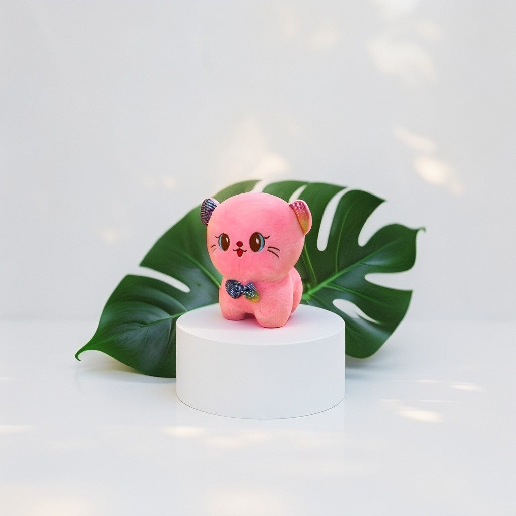 - 7-inch soft toy designed as an adorable pink cat