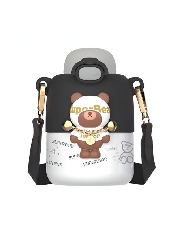 Super Bear – 430ml Stainless Steel Water Bottle | Cute Tritan Straw Sipper for Kids | Leak-Proof Cartoon School Bottle for Students & Children NOV4297.