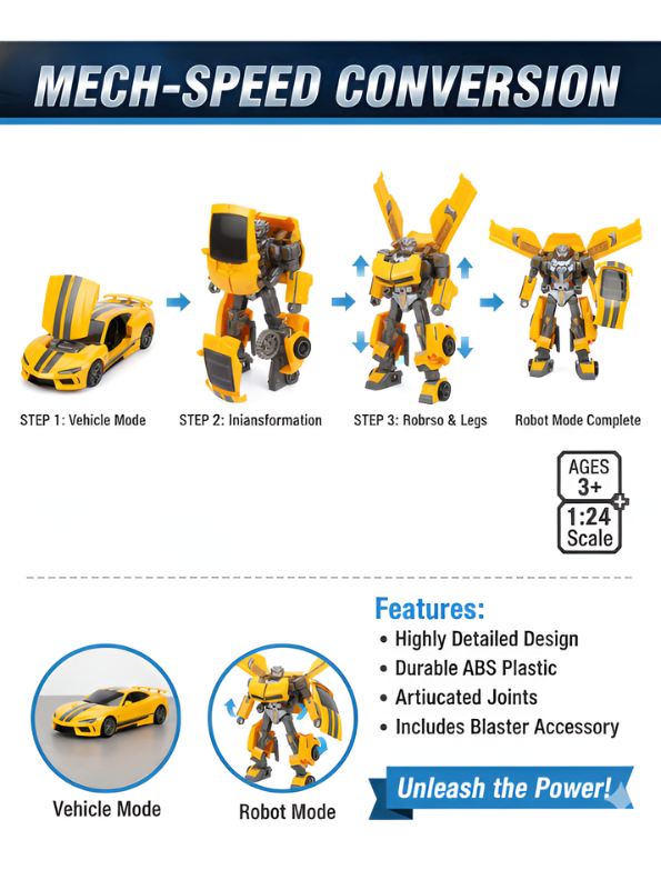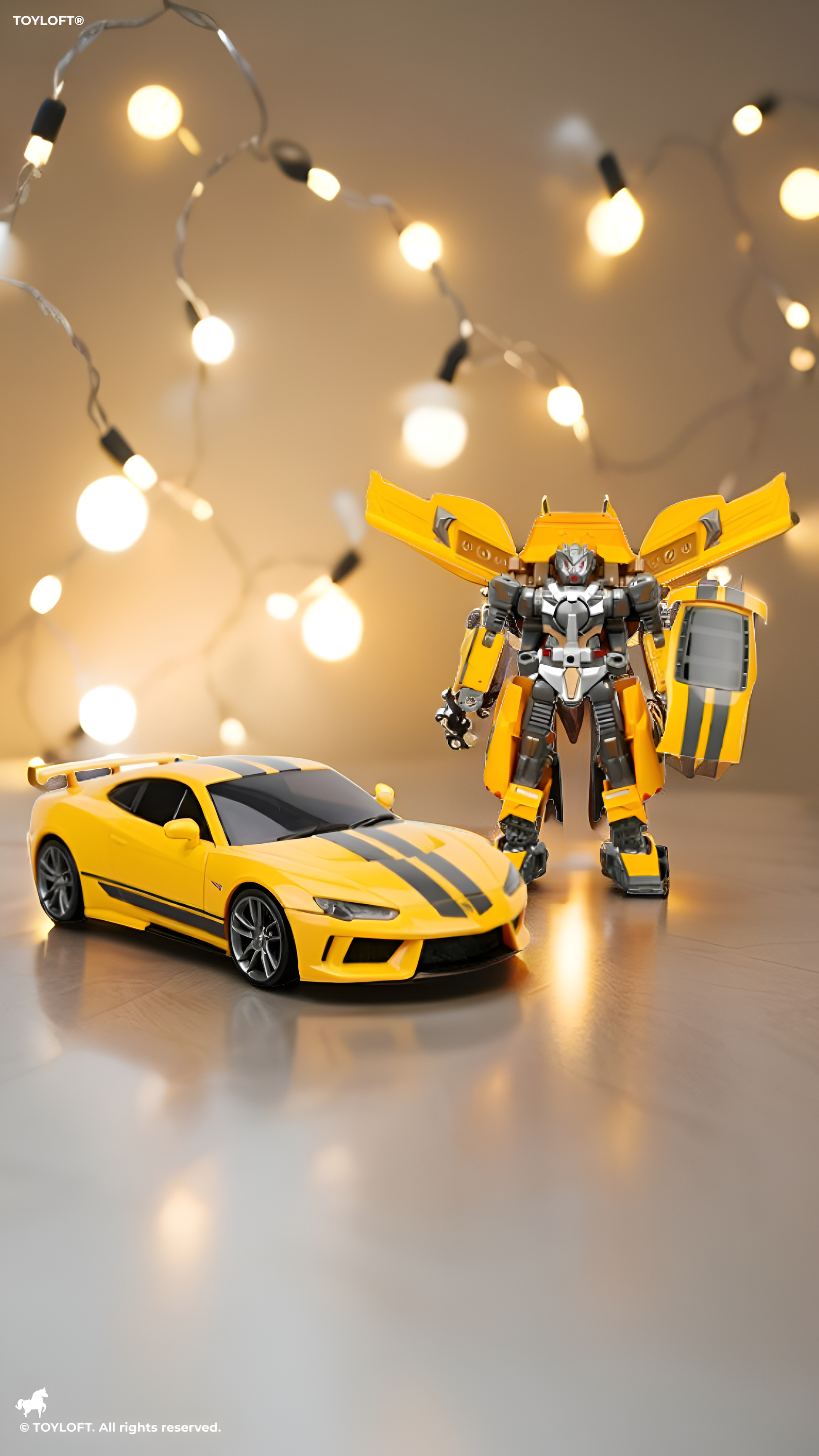 Yellow Bumblebee Transformer Action Figure - 2-in-1 Converting Sports Car to Robot Toy with Weapon Accessories - Collectible Transforming Robot for Kids & Adults LMI12609